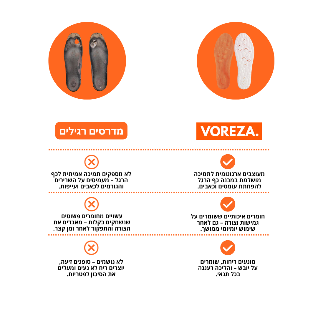 אחרי מחשבה רבה, ניסויים ובדיקות עם עשרות אנשים שסובלים מכאבים בכפות הרגליים מצאנו את הפתרון שיעשה הבדל אמיתי בכל צעד. וורזה – כי הבריאות שלך חשובה לנו.